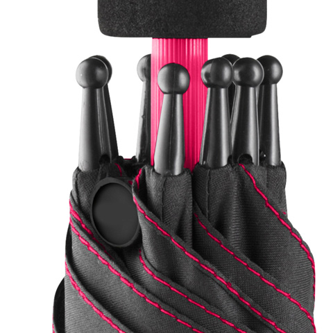 Ein attraktiver Automatik-Stockschirm mit einem farbigem Stock, farbigen Fiberglasschienen