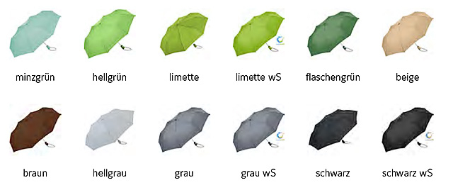 Eine umfangreiche Farbpalette mit bis zu 30 ! verschiedenen Farben bietet dieser Doppelautomatik-Taschenschirm in mit Öffnungs- und Schließautomatik.