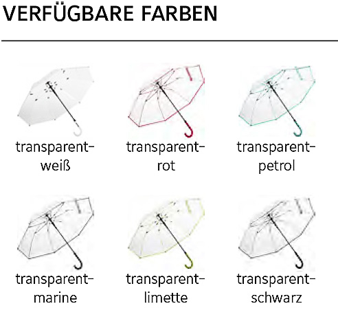 Ein Automatik-Stockschirm der sehr ansprechend ist mit transparentem Bezug und farbigen Design-Elementen.