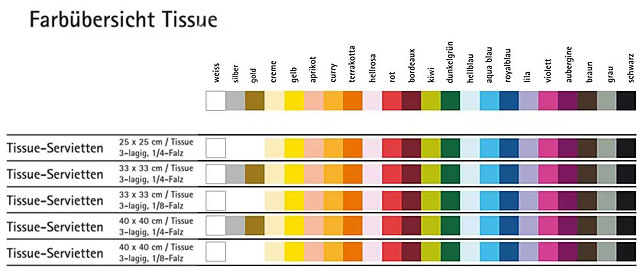 Servietten aus Tissue sind allgemein üblich. Individuell bedruckt, in verschiedenen Größen.