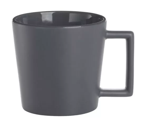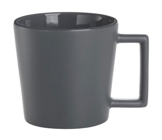 Das matt schwarze und matt graue Pendant zur Porzellantasse KIM. Mit Ihrem Logo zu bedrucken rundum. Eingetragenes, geschütztes Design.