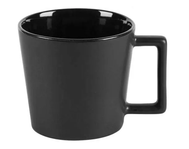 Diese außergewöhnliche Tasse mit großem Inhalt und großer Druckfläche für Ihre Werbebotschaft gibt es auch in matt schwarzer