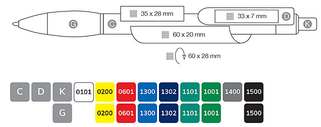 Alle farbigen Teile einzeln gestaltbar in unserm PENBUILDER