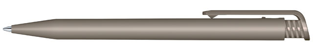 Beim Druckkugelschreiber sind die sichtbaren Teile aus Recycling-Material