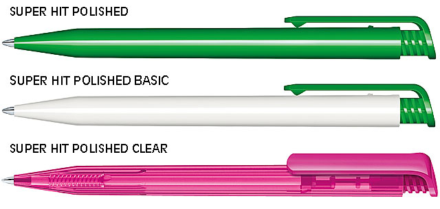 SUPER HIT POLISHED BASIC = Poliert opake Gehäuseoberfläche, weißer Schaft, farbiger Clip,