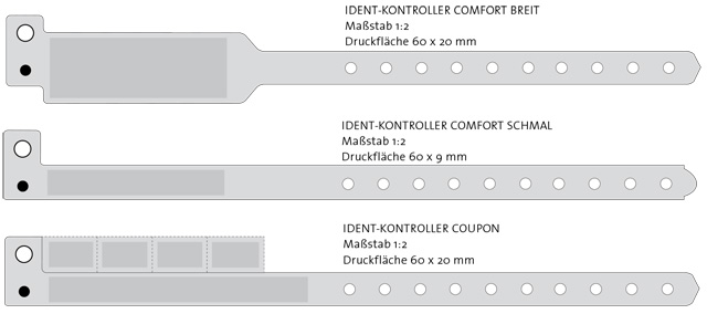 Als einfaches Eintrittskontrollband oder mit Coupons als abreissbare Wertmarke.