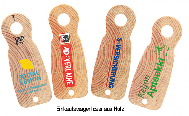 Personalisieren Sie die beliebten Einkaufswagenlöser mit Ihrem Logo und wählen Sie aus drei verschiedenen Materialien.